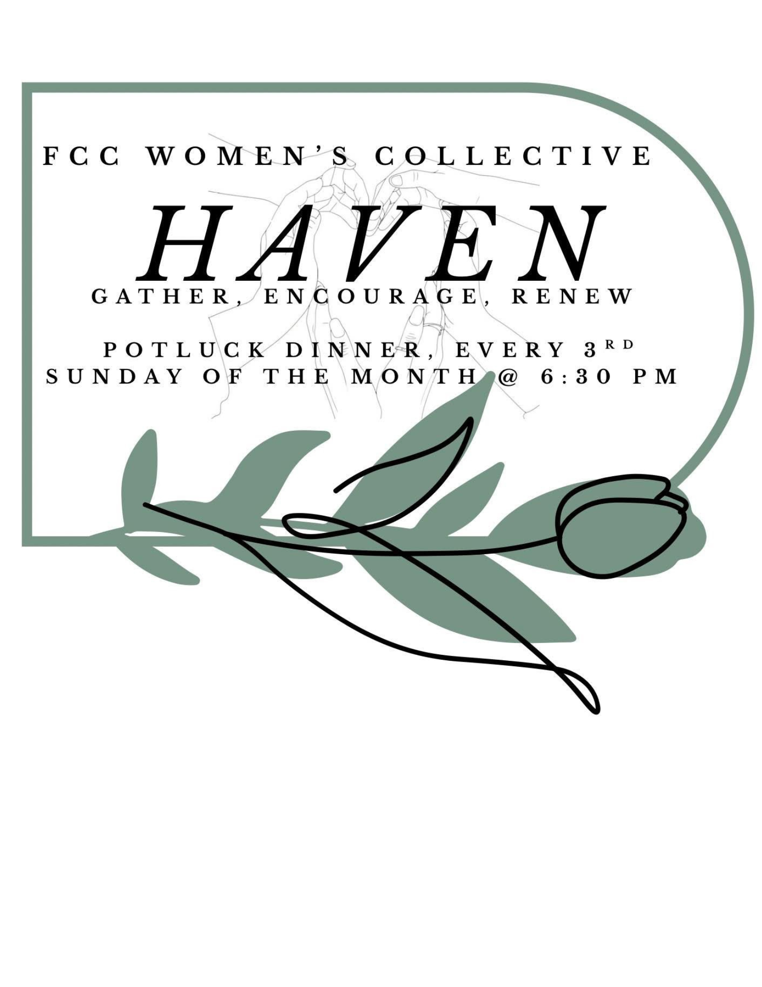 Haven, a monthly women’s gathering meeting the 3rd Sunday of every month at 6:30 PM. Get to know the other ladies in your church and be encouraged in your faith!